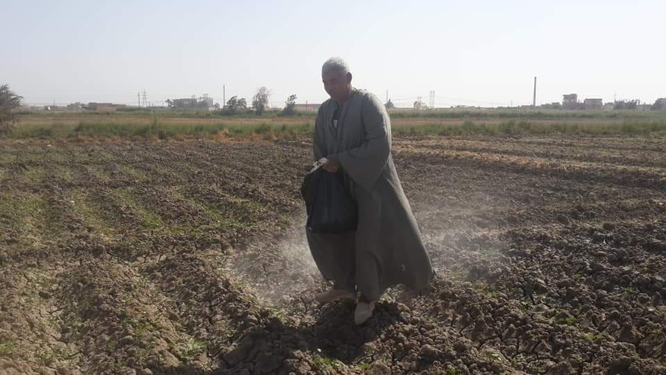 وتُجري عملية تعفير الأرض الزراعية بعد 50 إلى 60 يوماً من الزراعة في الصباح الباكر وقبل شروق الشمس بواسطة ماتور الظهر أو ما يعرف باسم العفارة , لكي يلتصق الكبريت بسطح النباتات من خلال الندى , وتكرر عملية التعفير بالكبريت بعد فترة تتراوح بين 10 إلى 15 يوماً وبعد سقوط الأمطار على الحقول ايضاً .