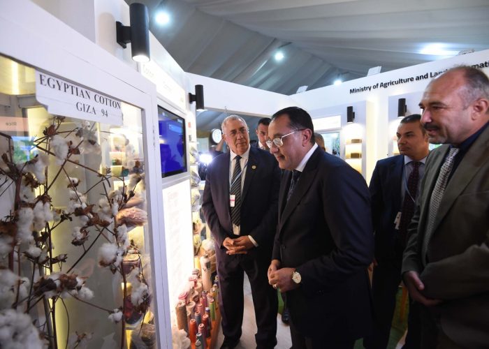 رئيس الوزراء إطلع على تقاوي المحاصيل الاستراتيجية التي يضمها جناح الوزارة من القمح والأرز والذرة والقطن وكذلك الأصناف الجديدة للبرنامج الوطني لإنتاج تقاوي الخضر وايضا أصناف تقاوى المحاصيل الزيتية والفول الصويا وعباد الشمس .