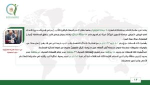 وتم الاشتراك في حملات مكبرة مع المحافظة ومديرية التموين ومباحث التموين ومديرية الطب البيطري ومديرية الصحة، وأسفرت تلك الحملات عن تحرير 128 محضرًا، تنوعت مابين محاضر نقص اشتراطات صحية، ضبط وسحب عينات لكمية من المواد الغذائية تقدر بـ 1 طن ونصف (لحوم، دواجن، منتجات ألبان، حلوى جافة) وذلك ضمن الحملات اليومية لضبط الأسواق، وتم سحب عينات للأغذية التي يشتبه في صلاحيتها للاستخدام، والتحفظ على جميع المضبوطات لاتخاذ الإجراءات القانونية، كما تم فحص الأغذية بمراكز التأهيل والإصلاح.