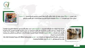 فيما يخص مخازن التغذية المدرسية، تم استيفاء عدد 1 مخزن ليصل إجمالي المنشآت التخزينية المستوفاة والخاصة بالتغذية المدرسية إلى 28 مخزنًا مدرج بالقائمة المعتمدة.